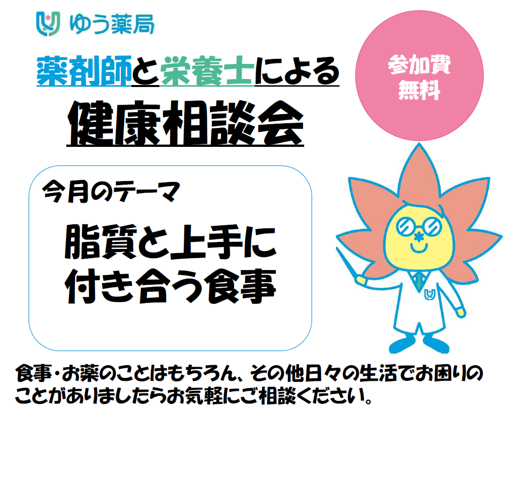 ゆう薬局では、地域のみなさまの健康をサポートできるよう今後健康相談会を開催いたします。