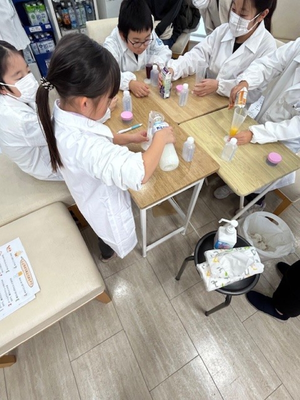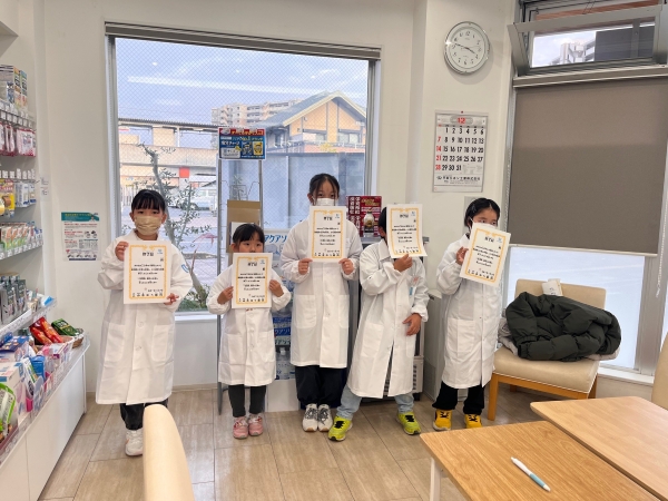 久しぶりの開催で、忙しい時期とも重なり準備がぎりぎりになったりもしましたが、店舗スタッフ全員で協力し取り組み無事に終える事ができました。参加して下さったお子さん達も、白衣を着て体験している時や、最後の集合写真を撮ってる時の笑顔を見て楽しんで頂けたかなと思いました。帰る間際に「また参加したい!」と仰って下さった方もいて、これからも定期的に開催していけたら良いなと思いました。