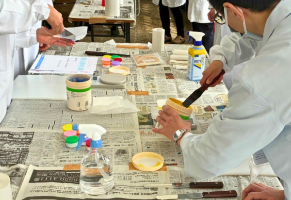 ゆう薬局職員も担当した「こども薬剤師体験コーナー」では、粉薬・水薬・ぬり薬の3つからこどもたちに体験したいものを選んでもらい、それぞれ実際にお薬の計量・分包あるいは混合・容器に入れる作業・薬袋の準備・保護者の方への投薬までしていただきました。