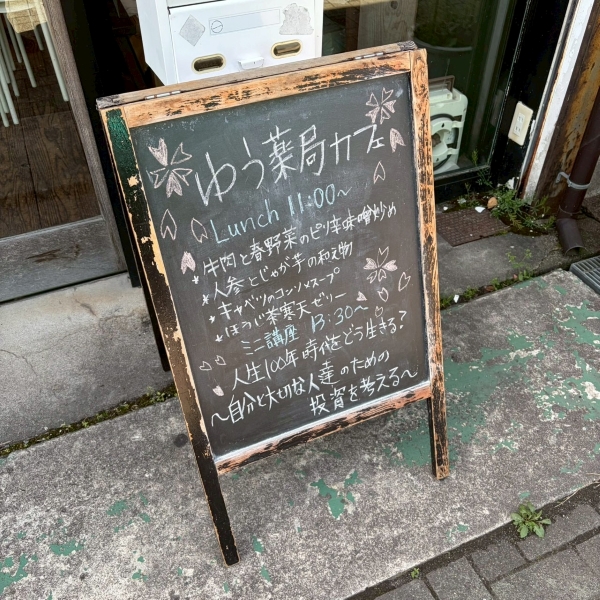月1回、近隣の平野屋商店街にある日替わり店長で運営するCafé&Bar FLAT+で始めました“ゆう薬局カフェ”。近隣地域包括と協力のうえ舞鶴エリアスタッフが運営し、栄養士が監修したランチを提供、薬剤師や地域の専門職による相談対応・ミニ講座などを行い地域との交流を深めています。