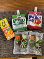 当日は気温が低い予想だったため、アームカバーやカイロを準備。朝は6時ごろにお餅(お土産の)2個、野菜ジュース、ヨーグルト、ビタミンジェルを摂取。また、12:15-スタートとある程度時間が空くので、直前までこまめにエナジージェルを摂取しました。